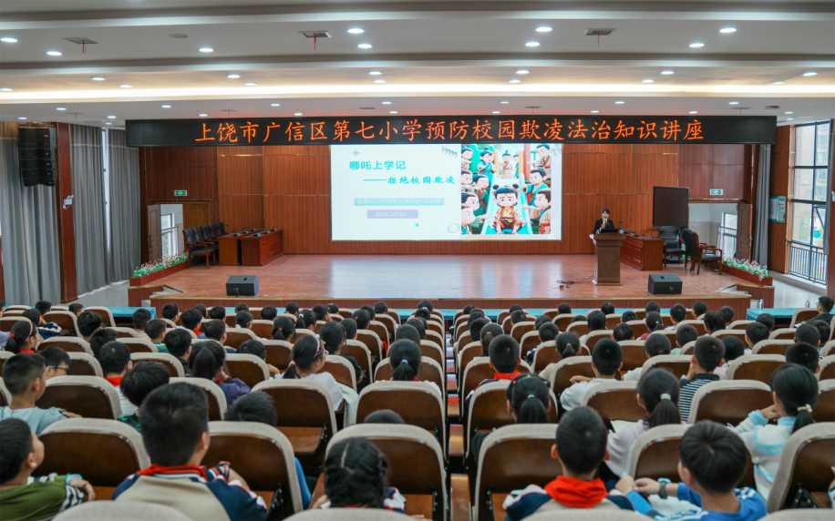 為進一步增強未成年人法治意識,10月31日下午,上饒市廣信區(qū)人民法院走進廣信區(qū)第七小學,以“哪吒上學記——拒絕校園欺凌”為主題,為四年級全體學生帶來一堂生動有趣、寓教于樂的法治課。