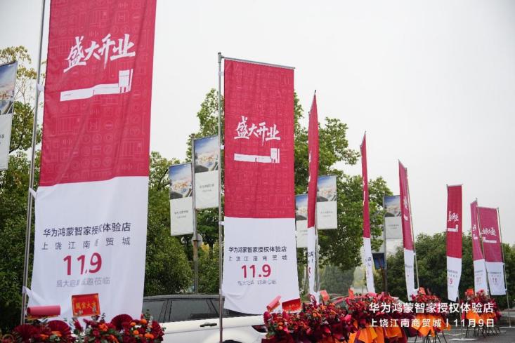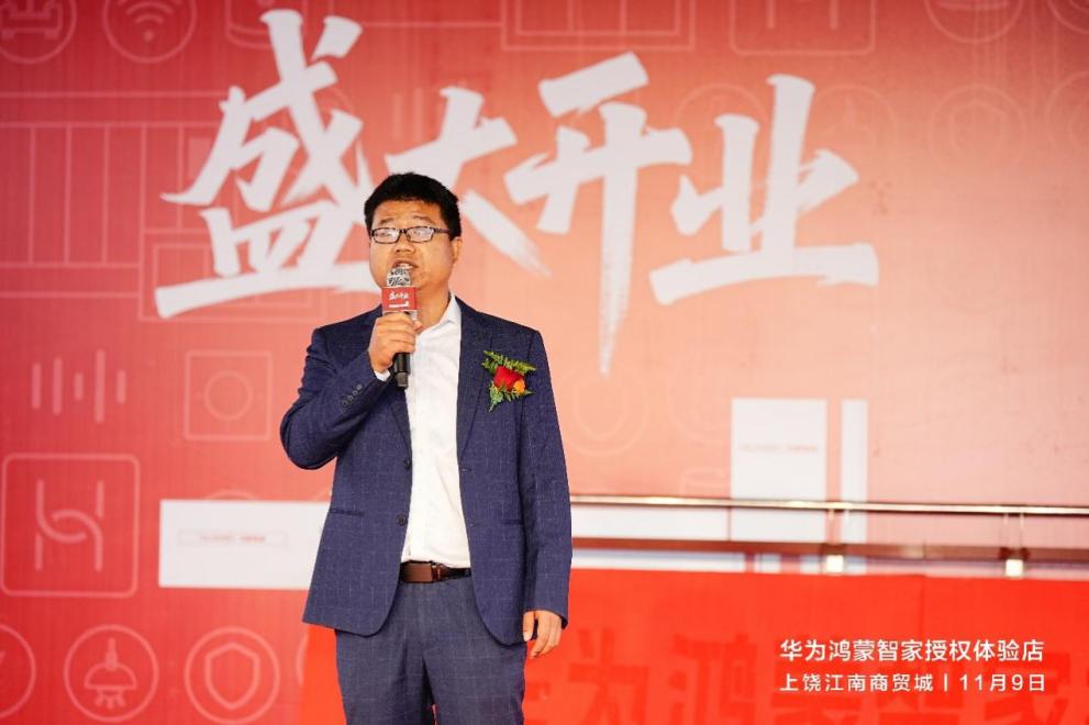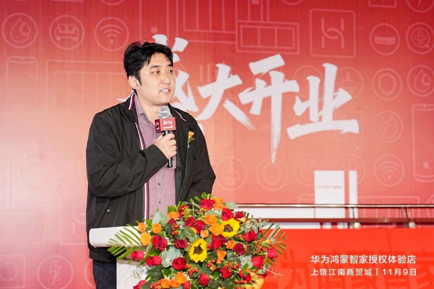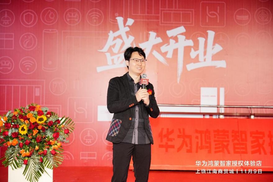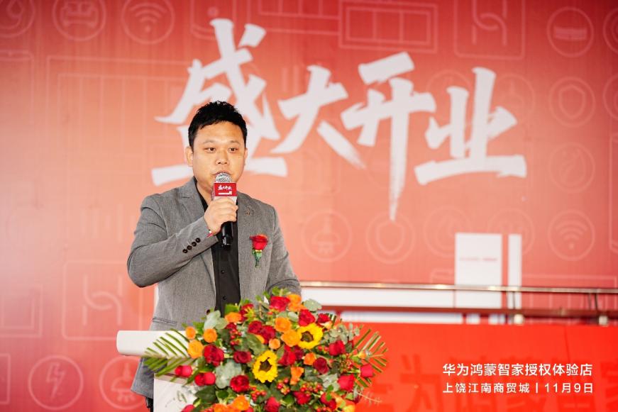 華為江西終端業(yè)務(wù)部鴻蒙智家總監(jiān)盧森林、上饒室內(nèi)裝飾協(xié)會會長張平、紅星建材商管江西清緣商業(yè)管理有限公司總經(jīng)理廖一成、華為鴻蒙智家授權(quán)體驗店上饒江南商貿(mào)城店總經(jīng)理孫健等相繼上臺做開業(yè)活動致辭發(fā)言