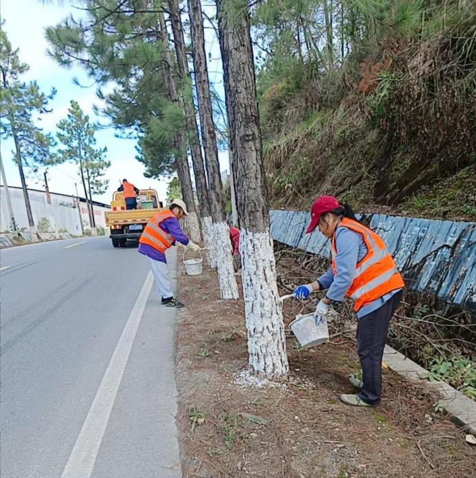 全面推進(jìn)提質(zhì)效,路樹刷白“無死角”。養(yǎng)護(hù)人員以“橫向到邊、縱向到底”為目標(biāo),對(duì)轄區(qū)國(guó)省干線公路、城鄉(xiāng)結(jié)合部路段及事故多發(fā)路段的路樹展開全面刷白作業(yè)。針對(duì)不同路段路樹特點(diǎn),采取差異化作業(yè)方式:對(duì)行道樹密集路段,采用“分組協(xié)作、流水作業(yè)”模式,提高工作效率,確保刷白質(zhì)量。