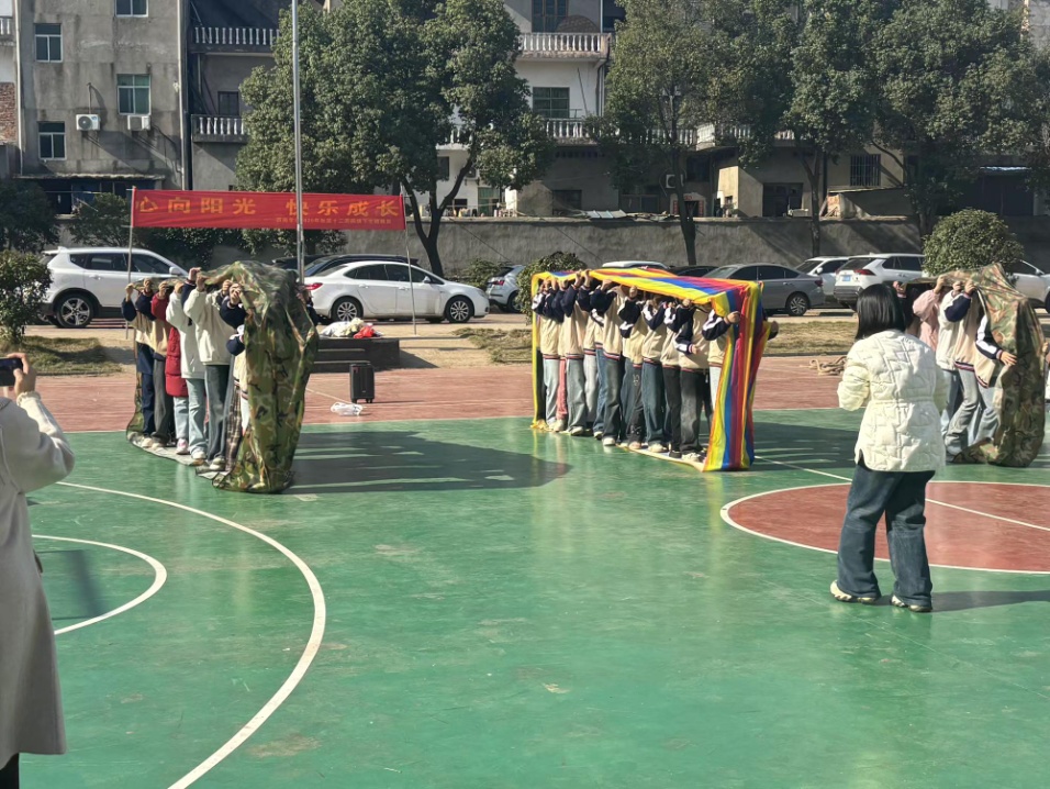 在運(yùn)動(dòng)會(huì)環(huán)節(jié),學(xué)校組織籃球、乒乓球及羽毛球等球類賽事,學(xué)生們?cè)谫悎錾蠐]灑汗水,展現(xiàn)出團(tuán)結(jié)拼搏的青春風(fēng)采。球類運(yùn)動(dòng)不僅鍛煉了身體素質(zhì),更強(qiáng)化了團(tuán)隊(duì)協(xié)作意識(shí)。同步開展的心理團(tuán)輔活動(dòng),由學(xué)校聯(lián)合余干縣青少年健康成長輔導(dǎo)中心專業(yè)設(shè)計(jì),包含“風(fēng)火輪”“心有千千結(jié)”“動(dòng)力圈”等趣味游戲。學(xué)生們通過協(xié)作制作圓環(huán)、破解人結(jié)、集體拉繩等互動(dòng),在輕松氛圍中釋放情緒壓力,提升溝通與抗挫能力。