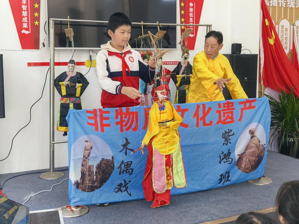 活動伊始,清脆鑼鼓聲中,省級非遺傳承人攜數(shù)十年相伴的木偶登臺獻藝。方寸舞臺上,三十余根絲線在傳承人指尖靈動翻飛,孫悟空騰云駕霧、穆桂英英姿颯爽,傳統(tǒng)戲曲角色唱念做打形神兼?zhèn)?,印證了 “玉山窟儡天下絕” 的古老贊譽,讓隊員們直觀感受非遺文化的深厚底蘊。