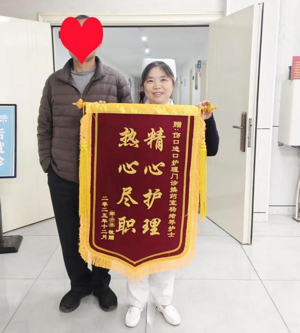 “本以為這么難愈合的傷口要拖很久,多虧了楊護(hù)士的精心照料!”患者及家屬專程送來錦旗表達(dá)謝意。對楊緒琴而言,換藥、宣教、安撫是日復(fù)一日的平凡工作,但正是這份對專業(yè)的堅守、對患者的熱忱,讓平凡崗位綻放不凡光彩。這面錦旗不僅是榮譽(yù)的象征,更是護(hù)理工作者踐行“以患者為中心”理念的責(zé)任見證,激勵著全院護(hù)理人員繼續(xù)用專業(yè)與溫暖守護(hù)患者健康。(汪詩雅)