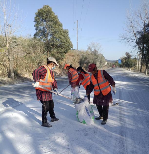 15分鐘內(nèi),由8名養(yǎng)護(hù)人員組成的搶險(xiǎn)隊(duì)伍攜帶掃帚、鐵鍬、編織袋及灑水車等工具、設(shè)備抵達(dá)事發(fā)地點(diǎn)。現(xiàn)場(chǎng)景象令人揪心:約100米長(zhǎng)的路面被鈣粉均勻覆蓋,形成一條“白色帶”,過(guò)往車輛小心翼翼地在鈣粉區(qū)域邊緣緩慢通行,部分摩托車駕駛員因路面絲滑險(xiǎn)些摔倒。搶險(xiǎn)隊(duì)伍立即按照預(yù)案分工,一方面安排專人在事發(fā)路段兩端設(shè)置警示標(biāo)志、錐形桶,引導(dǎo)車輛有序分流,提醒駕駛員減速慢行;另一方面迅速展開清掃作業(yè)。