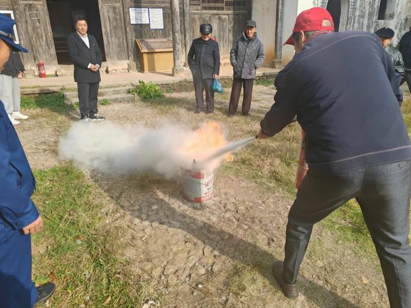 演練現(xiàn)場,不少村民第一次拿起滅火器進行實操?!霸瓉硎褂脺缁鹌饔羞@么多要領,這次親手操作一遍,心里踏實多了!”一位參與村民表示。消防隊員系統(tǒng)講解了初起火災撲救技巧、疏散逃生要點及文物建筑防火特別注意事項。