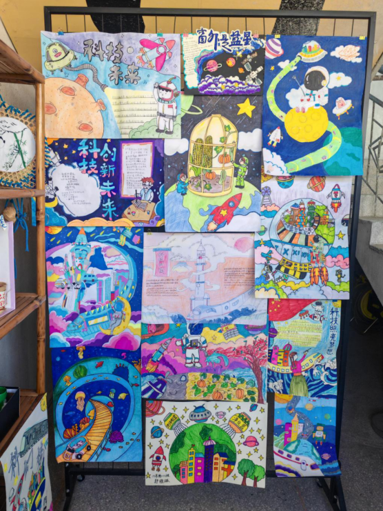 活動(dòng)期間,科技小制作、科幻畫、科普手抄報(bào)、科學(xué)小實(shí)驗(yàn)、主題征文等豐富活動(dòng)同步開展。同學(xué)們化身“小小科學(xué)家”與“創(chuàng)意發(fā)明家”,用童心暢想科技,用指尖創(chuàng)造精彩:廢舊物品在巧手下變身趣味小發(fā)明,畫紙上繪就未來(lái)世界的奇幻圖景,手抄報(bào)里藏著通俗易懂的科學(xué)知識(shí),小實(shí)驗(yàn)中見(jiàn)證奇妙的科學(xué)原理,征文字里行間滿是對(duì)科技的熱愛(ài)與向往。一件件充滿童趣與創(chuàng)意的作品,一場(chǎng)場(chǎng)生動(dòng)有趣的實(shí)踐活動(dòng),盡顯朝小學(xué)子勇于探索、樂(lè)于創(chuàng)新的精神風(fēng)貌。