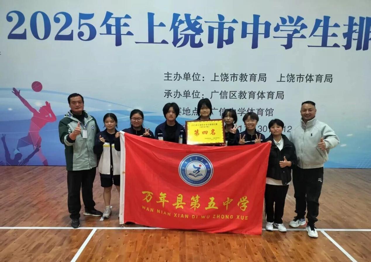 捷報(bào)傳來(lái),近日,萬(wàn)年縣第五中學(xué)女子排球隊(duì)在2025年上饒市中學(xué)生排球比賽中奮勇拼搏,憑借扎實(shí)的技戰(zhàn)術(shù)水平和頑強(qiáng)的競(jìng)技作風(fēng),斬獲初中女子組第四名的優(yōu)異成績(jī)。