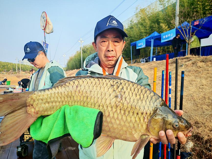 戎德波憑借對(duì)本土水域魚(yú)情的精準(zhǔn)把握和嫻熟釣技,成功牽起一尾重量級(jí)大魚(yú)。經(jīng)過(guò)短暫而緊張的搏魚(yú)過(guò)程,這尾重達(dá)12斤的黃金鯽魚(yú)王被順利入護(hù),瞬間點(diǎn)燃現(xiàn)場(chǎng)氣氛。戎德波憑借關(guān)鍵時(shí)刻的驚艷表現(xiàn),于最后一場(chǎng)賽事14時(shí)22分釣獲重達(dá)12斤的全場(chǎng)最大單尾,以“絕殺”之勢(shì)鎖定勝局,成功斬獲本次2026中國(guó)湖城?鄱陽(yáng)休閑垂釣嘉年華首戰(zhàn)冠軍,為家鄉(xiāng)贏得榮譽(yù)。