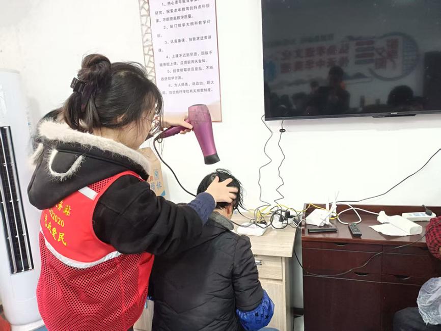 老人們陸續(xù)到場,在工作人員引導(dǎo)下有序簽到入座。染發(fā)區(qū)內(nèi),工作人員細(xì)心為老人系好圍布,仔細(xì)涂抹染發(fā)膏,一邊操作一邊與老人親切交談,關(guān)心他們的生活近況與新年期盼。洗發(fā)區(qū)里,志愿者用溫水輕柔地為老人沖洗頭發(fā),吹干時還特意調(diào)整風(fēng)溫,避免老人受涼。整個過程笑聲陣陣,老人們臉上始終洋溢著喜悅與滿足。