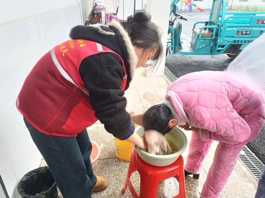 活動現(xiàn)場溫馨洋溢。工作人員提前布置了活動場地,劃分出染發(fā)區(qū)、洗發(fā)區(qū)與等候區(qū),并張貼了喜慶的新春畫紙,營造出濃厚的節(jié)日氛圍??紤]到老年人的身體狀況,活動特意選用溫和無刺激的染發(fā)產(chǎn)品,并提前協(xié)調(diào)李橋村村官、婦女主任等人員協(xié)助服務(wù),確?;顒影踩行蜻M(jìn)行。