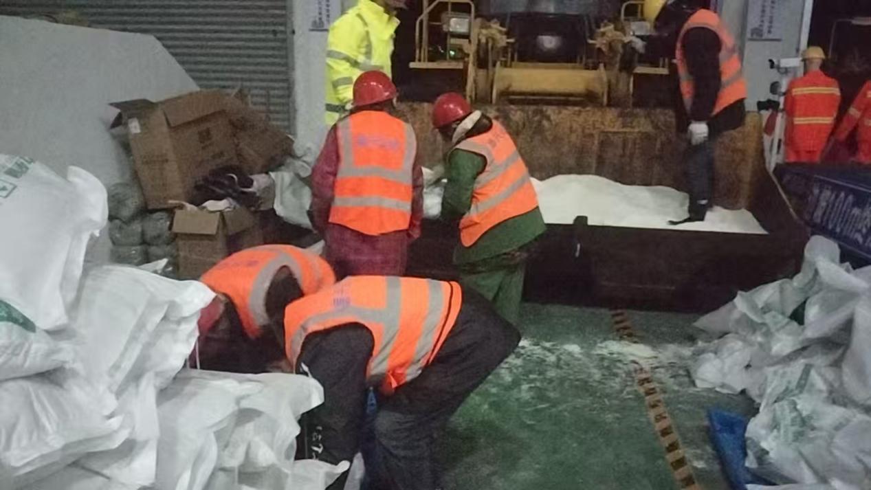 在巡查過程中,一旦發(fā)現(xiàn)路面出現(xiàn)結(jié)冰跡象或易結(jié)冰隱患路段,巡查隊(duì)伍立即聯(lián)動(dòng)應(yīng)急作業(yè)隊(duì)伍開展處置工作。作業(yè)人員精準(zhǔn)對(duì)易結(jié)冰路段撒布工業(yè)鹽,通過機(jī)械作業(yè)與人工輔助相結(jié)合的方式,加快融雪化冰速度,有效遏制路面結(jié)冰蔓延。寒夜中,橘色的養(yǎng)護(hù)工裝在風(fēng)雪中格外醒目,作業(yè)人員們不顧刺骨的寒風(fēng)和冰冷的雨雪,堅(jiān)守作業(yè)一線,有條不紊地開展撒布作業(yè),確保每一段重點(diǎn)路段都得到有效管控,用實(shí)干為過往車輛和行人開辟安全通道。