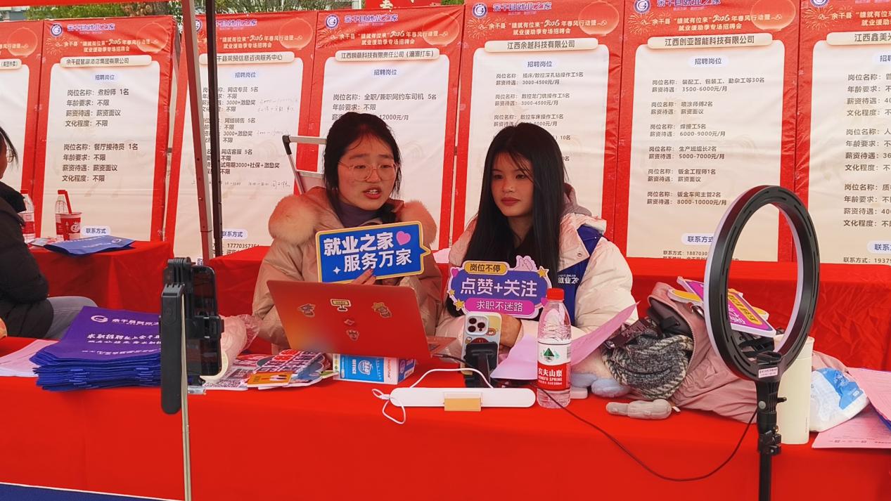 無(wú)法親臨現(xiàn)場(chǎng)的求職者也不必遺憾。余干縣就業(yè)之家同步搭建直播間,主播與現(xiàn)場(chǎng)10余家企業(yè)代表熱情地向屏幕前的觀眾推介崗位,實(shí)時(shí)解答疑問(wèn),打破了信息壁壘,讓更多人在指尖滑動(dòng)間就能找到心儀的工作。