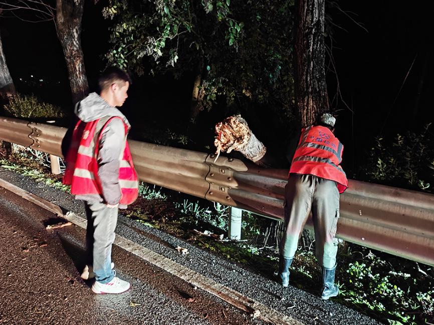 接到反映后,該中心值班人員迅速行動(dòng),聯(lián)系就近養(yǎng)護(hù)人員并帶好應(yīng)急工具前往事發(fā)位置開(kāi)展清理工作。抵達(dá)現(xiàn)場(chǎng)后,工作人員在路兩側(cè)擺好安全錐,用油鋸將倒伏樹(shù)木主干部分切割,隨后徒手將枝干拖至路邊。經(jīng)過(guò)近2小時(shí)緊張有序的清理,倒伏路樹(shù)被徹底移除。考慮到正值春運(yùn)出行高峰期,清障作業(yè)完成后,值班人員并未停歇,隨即對(duì)該線(xiàn)路展開(kāi)了夜間安全巡查,仔細(xì)排查沿線(xiàn)是否有其他安全隱患,直至確認(rèn)該路段全線(xiàn)安全暢通,方才安心撤離。
