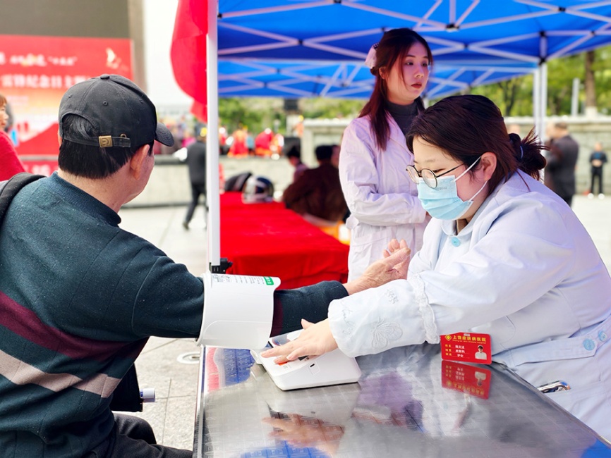 除了專業(yè)的皮膚科服務(wù),志愿者還熱情地為居民免費測量血壓、血糖,并發(fā)放內(nèi)容豐富的皮膚病防治知識手冊,講解春季皮膚護理要點、科學防曬保濕以及預防過敏的實用技巧,提醒大家要做到皮膚問題的早發(fā)現(xiàn)、早干預和規(guī)范治療。針對社區(qū)內(nèi)行動不便的高齡老人及特殊群體,服務(wù)隊還提供了貼心的上門訪視和“一對一”健康咨詢服務(wù),以實際行動詮釋醫(yī)者仁心的溫度。