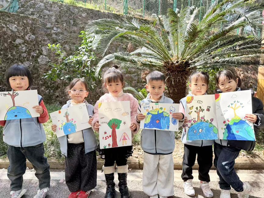 除戶外植樹(shù)外,園內(nèi)同步開(kāi)展創(chuàng)意手工活動(dòng)。孩子們手握彩筆、巧用材料,將綠樹(shù)葉、藍(lán)地球與春日美景融入作品,用靈動(dòng)的創(chuàng)意描繪對(duì)家園的熱愛(ài)。一幅幅充滿童趣的作品,不僅承載著孩子們的純真童心,更成為他們踐行環(huán)保理念、感悟成長(zhǎng)意義的生動(dòng)注腳。