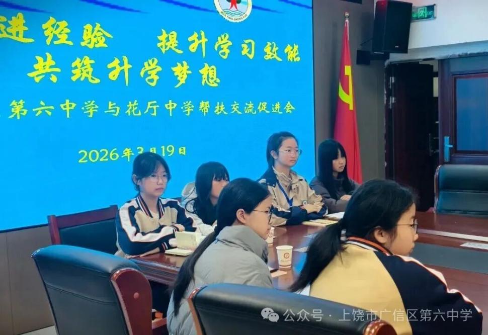 3月19日,廣信區(qū)第六中學(xué)與花廳中學(xué)聯(lián)合開展以“借鑒先進(jìn)經(jīng)驗(yàn) 提升學(xué)習(xí)效能 共筑升學(xué)夢想”為主題的校際師生交流學(xué)習(xí)活動(dòng)?;◤d中學(xué)優(yōu)秀學(xué)生代表及帶隊(duì)教師走進(jìn)六中校園,開啟一場互學(xué)互鑒、共促成長的學(xué)習(xí)之旅。