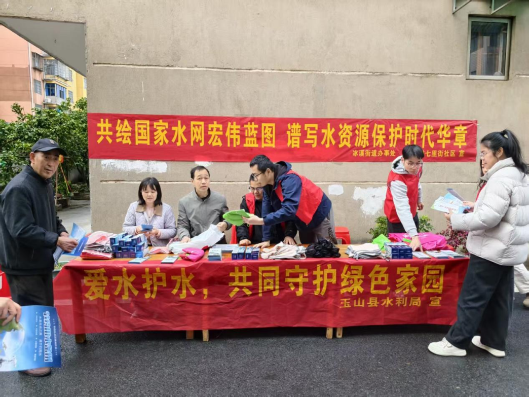 在第三十四屆“世界水日”、第三十九屆“中國水周”暨第七屆“江西省河湖保護(hù)活動(dòng)周”到來之際,為深入貫徹落實(shí)水資源保護(hù)相關(guān)要求,大力倡導(dǎo)節(jié)水護(hù)水、愛水惜水理念,營造全民參與河湖保護(hù)的良好氛圍,玉山縣水利局聯(lián)合冰溪街道辦事處、七里街社區(qū),在七里街社區(qū)開展以“共繪國家水網(wǎng)宏偉藍(lán)圖,譜寫水資源保護(hù)時(shí)代華章”為主題的節(jié)水護(hù)水宣傳活動(dòng),以實(shí)際行動(dòng)推動(dòng)水資源保護(hù)理念深入人心、落地見效。