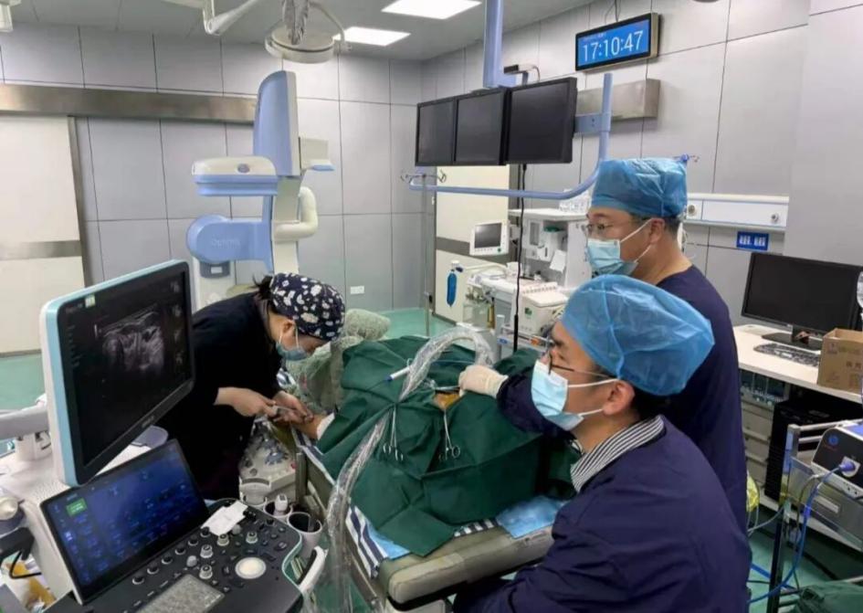 本次篩查共接診156人次,經(jīng)肖武教授嚴(yán)謹(jǐn)評估,最終篩選出8位符合甲狀腺微波消融指征的患者。在肖武教授現(xiàn)場精準(zhǔn)指導(dǎo)下,醫(yī)院超聲介入室林軍主任順利開展了甲狀腺微波消融手術(shù)。該手術(shù)的成功實施,不僅標(biāo)志著廣信區(qū)人民醫(yī)院在甲狀腺微創(chuàng)診療領(lǐng)域取得全新突破,也填補(bǔ)了區(qū)域內(nèi)相關(guān)技術(shù)的空白,為本地甲狀腺疾病患者提供了更優(yōu)質(zhì)的診療選擇。