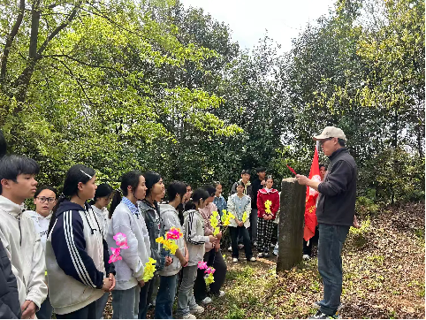 抵達(dá)墓地后,學(xué)校團(tuán)支部負(fù)責(zé)人向師生介紹胡居仁先生生平、治學(xué)理念及修身事跡,同學(xué)們凝神聆聽,崇敬之情油然而生,深切體會到本土文脈的厚重。