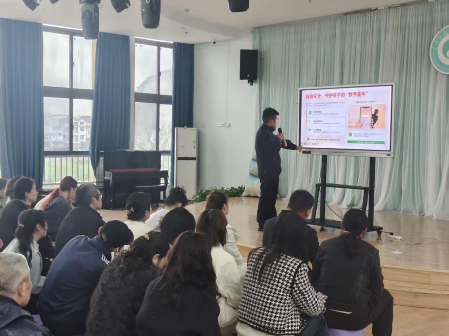 為進一步深化平安校園建設,凝聚家園協(xié)同育人合力,切實提升廣大家長的安全防范意識和監(jiān)護能力,4月3日下午,廣信區(qū)花廳鎮(zhèn)中心幼兒園特邀轄區(qū)派出所民警入園,面向全體幼兒家長開展了一場主題為“法治護航,安全同行”的安全知識專題講座。此次活動旨在通過專業(yè)講解與互動交流,共同筑牢幼兒成長的安全防護網(wǎng),為孩子們的健康快樂成長營造更加安全、和諧的環(huán)境。