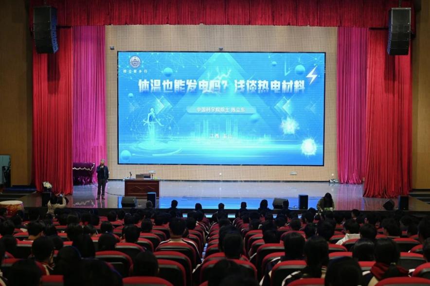 隨后,陳立東院士科普報(bào)告會(huì)在學(xué)校城北校區(qū)大禮堂舉行。報(bào)告會(huì)由校黨委書記主持。高一年級師生代表聆聽科普報(bào)告會(huì)。報(bào)告中,陳立東院士以“體溫也能發(fā)電嗎?——淺談熱電材料”為題,圍繞“電與生活”“溫差發(fā)電”“熱電制冷”“熱電材料科學(xué)”四個(gè)板塊展開,向現(xiàn)場師生們系統(tǒng)介紹了熱電材料背后的物理學(xué)原理。他以深入淺出、通俗易懂的語言,詳細(xì)講解了熱電材料的相關(guān)知識,從幾種發(fā)電方式、電的產(chǎn)生到熱電效應(yīng)原理、溫差發(fā)電用途,從熱電效應(yīng)應(yīng)用到熱電材料研究體會(huì),將熱電材料與前沿科技娓娓道來。他結(jié)合自身國內(nèi)外求學(xué)、科研經(jīng)歷的體會(huì),勉勵(lì)同學(xué)們要揚(yáng)長補(bǔ)短,為社會(huì)做一點(diǎn)有用的事。