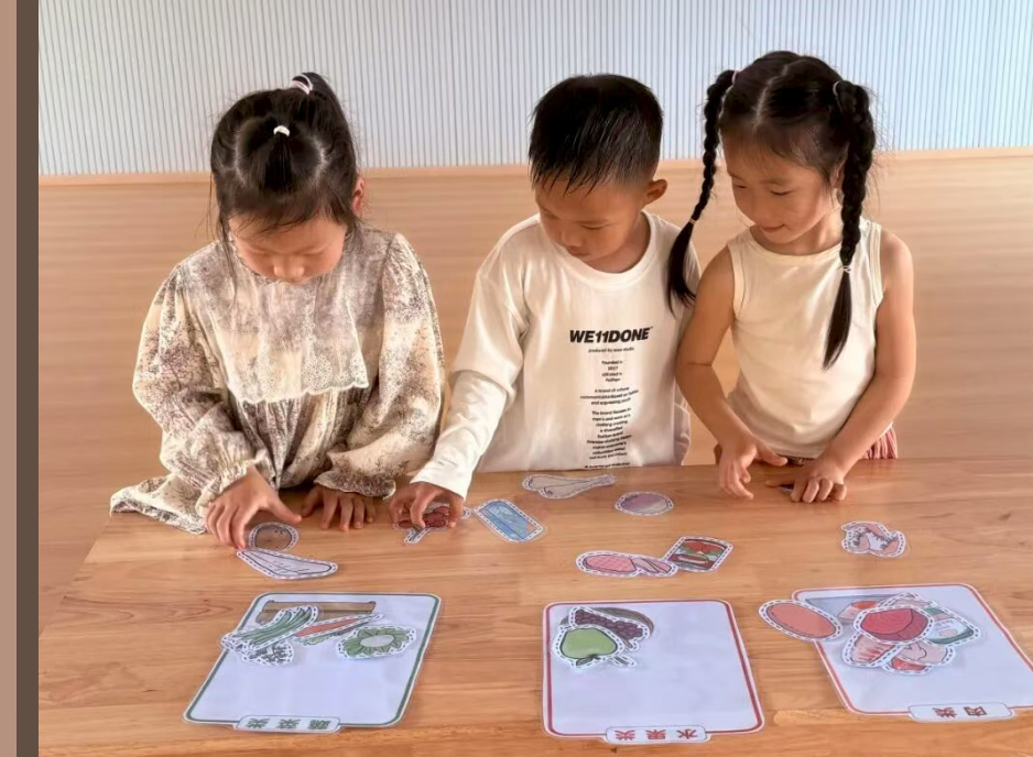 健康飲食與環(huán)保教育同步推進(jìn),“健康食物找朋友”游戲中,幼兒將食物卡片按肉類、蔬菜、水果分類,在互動(dòng)中認(rèn)識(shí)食物種類,樹立合理飲食意識(shí);垃圾分類小課堂上,幼兒牢記分類口訣,積極參與迷你垃圾桶投放練習(xí),共同探討常見垃圾的正確分類方法。