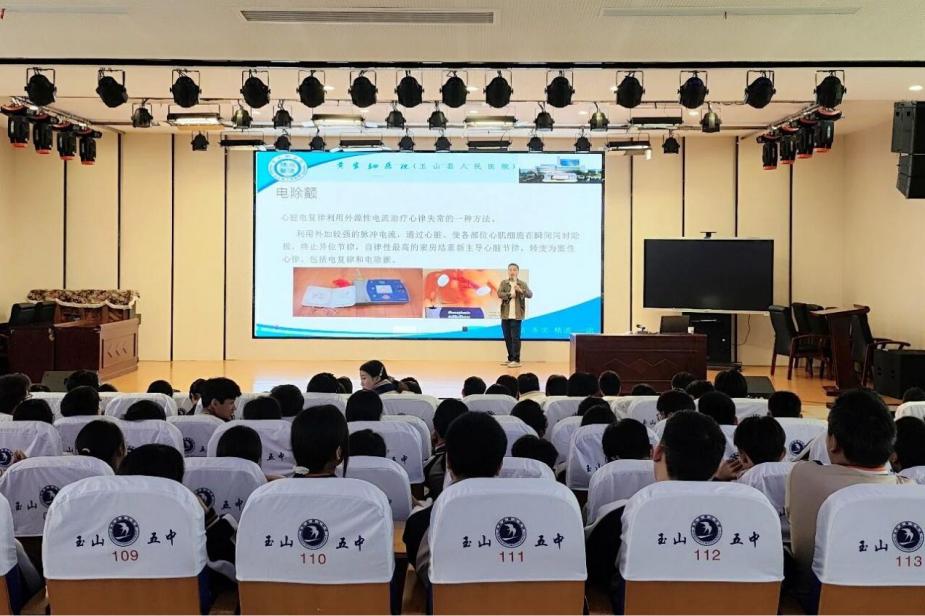 活動特邀黃家駟醫(yī)院(玉山縣人民醫(yī)院)急診科專家現(xiàn)場授課,聚焦青少年日常健康與安全防護(hù)核心需求,結(jié)合青少年生活實際,圍繞傳染病預(yù)防、交通安全出行、防溺水安全、呼吸心跳驟停應(yīng)急處置四大重點領(lǐng)域,進(jìn)行全面細(xì)致的科普講解,內(nèi)容兼具專業(yè)性與實用性,貼合學(xué)生成長需求。