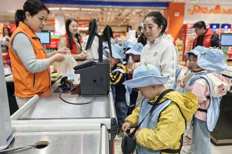 在教師與家長(zhǎng)志愿者的陪護(hù)下,孩子們手持購(gòu)物清單,排著整齊的隊(duì)伍前往超市。走進(jìn)超市后,孩子們被琳瑯滿目的商品吸引,在教師引導(dǎo)下,認(rèn)識(shí)了生鮮區(qū)、零食區(qū)、文具區(qū)等不同區(qū)域,了解商品分類(lèi)的邏輯,感受濃厚的生活煙火氣。