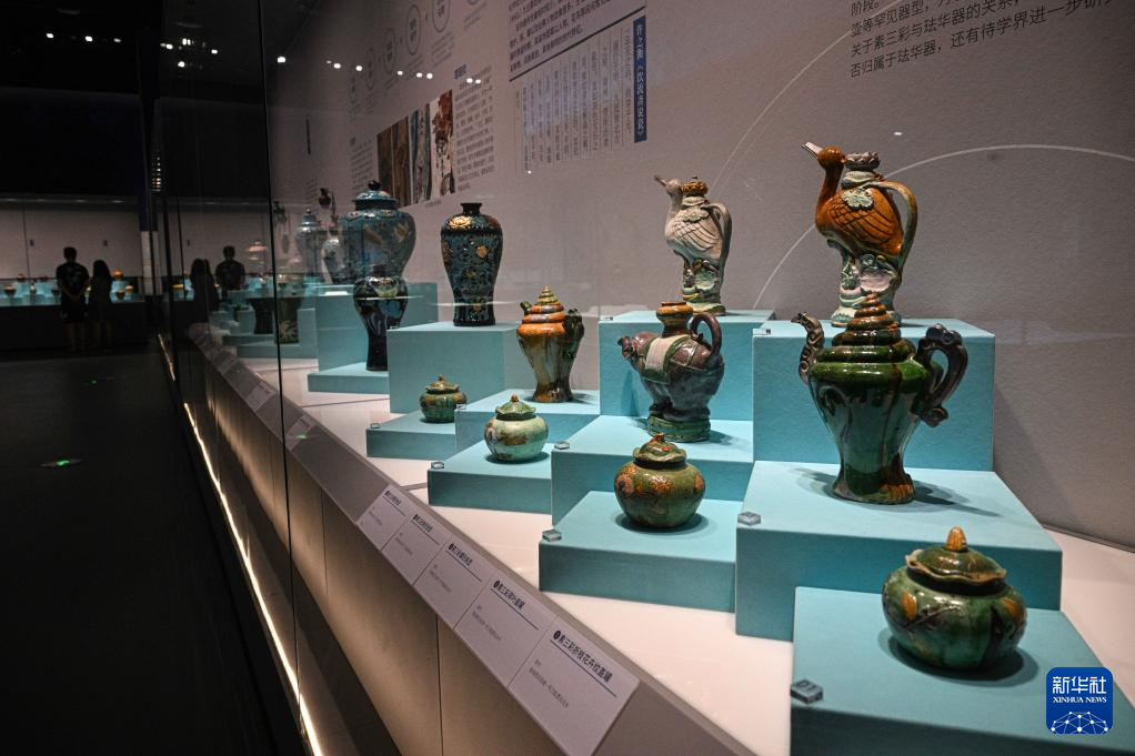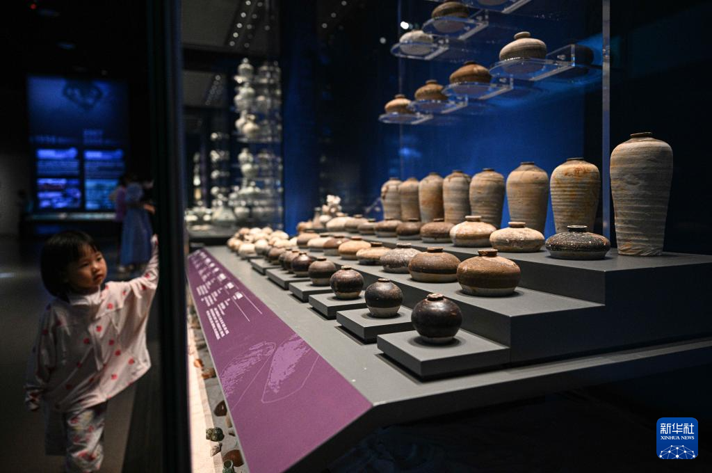 6月12日在“八百年守候——西沙華光礁Ⅰ號(hào)沉船特展”上拍攝的眾多小口陶瓶和醬釉小口罐。