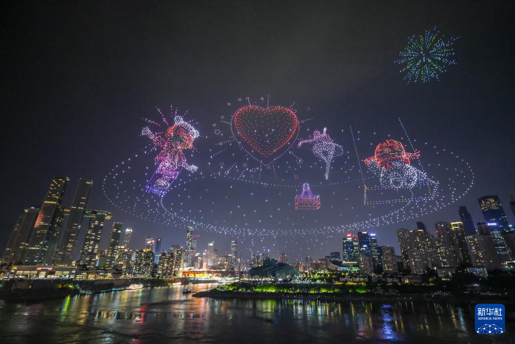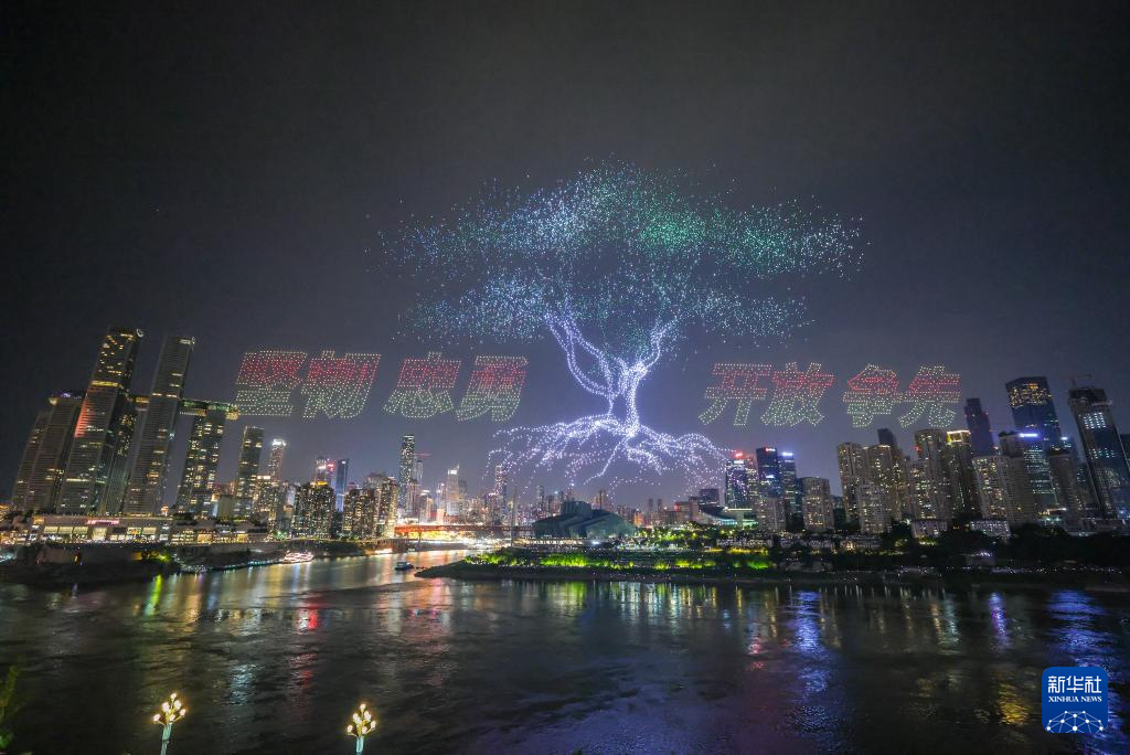6月17日晚,重慶舉行超大規(guī)模無人機(jī)燈光秀表演,由11787架無人機(jī)組成的雙編隊(duì)飛行從重慶市南岸區(qū)彈子石廣場起飛,創(chuàng)造了“最多無人機(jī)組成的空中圖案”吉尼斯世界紀(jì)錄。