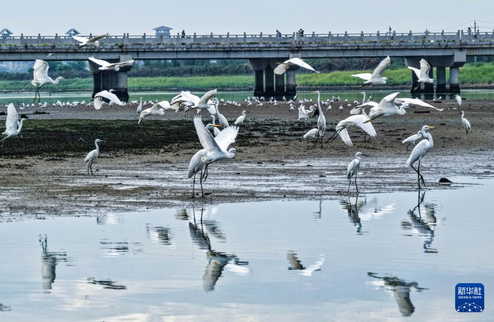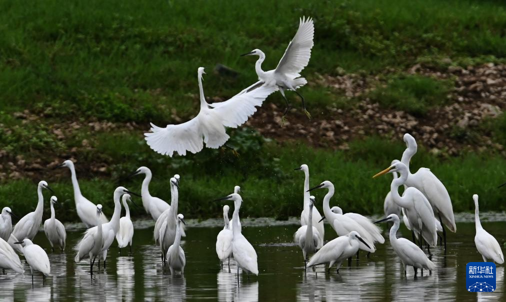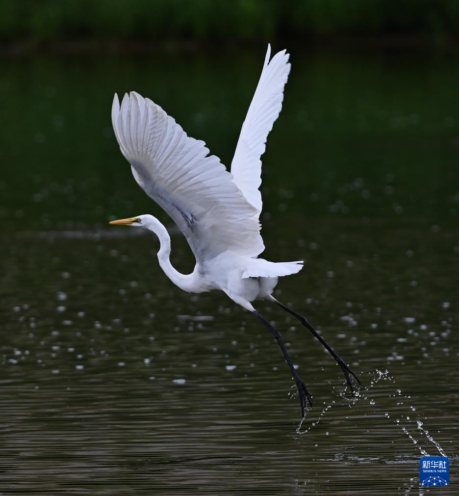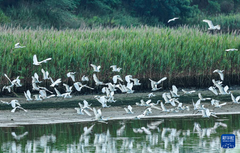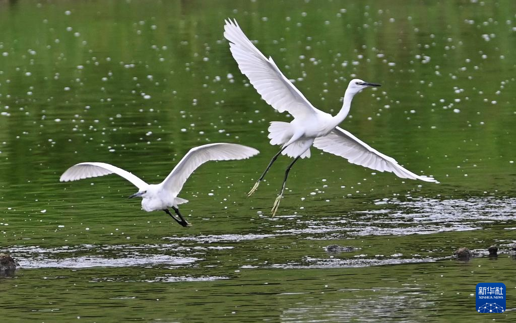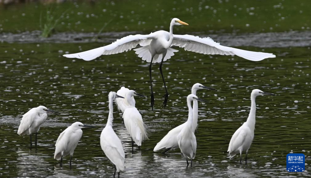 8月10日在山東省滕州市荊河水域拍攝的鷺鳥(niǎo)。