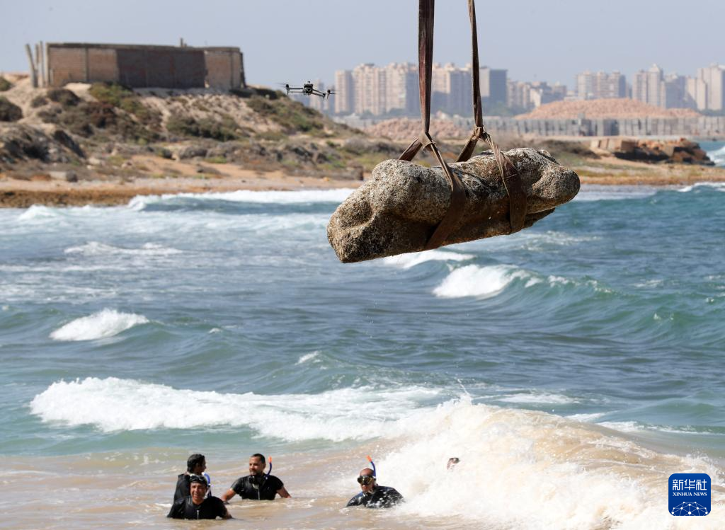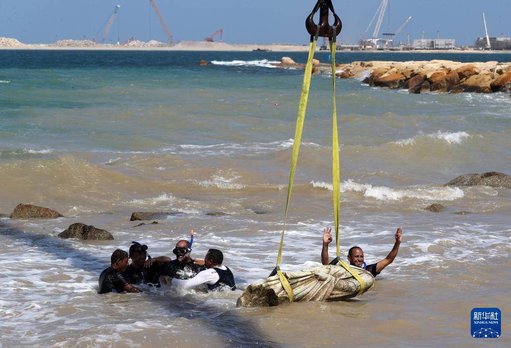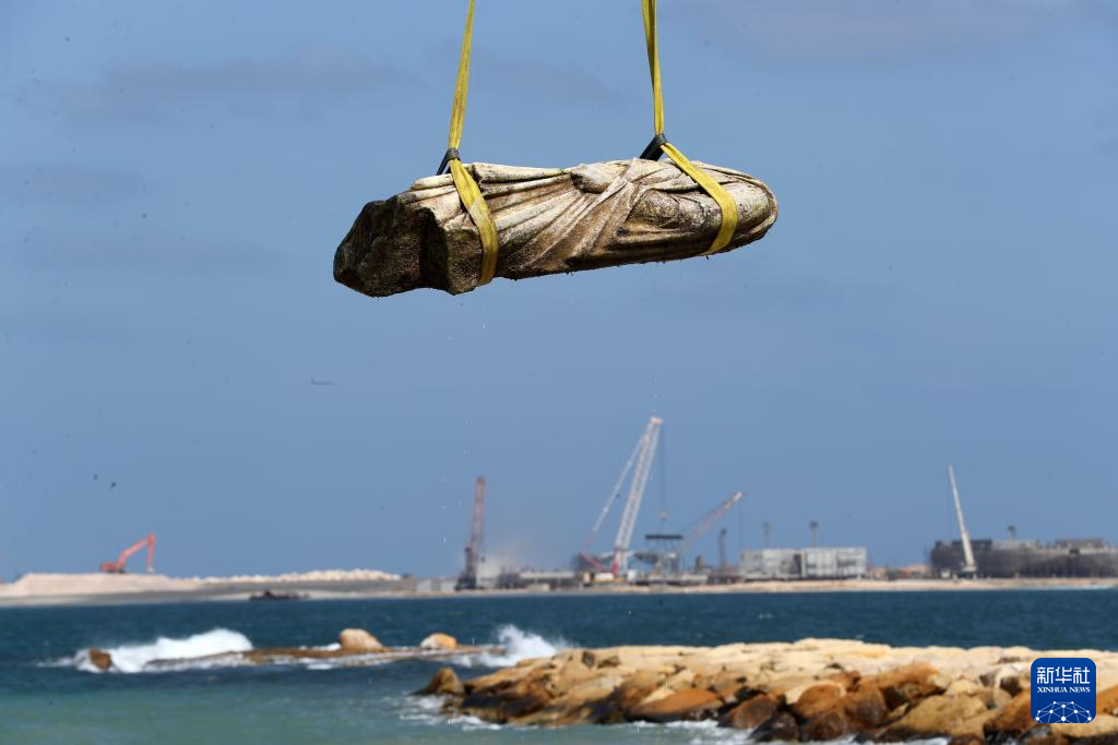 當(dāng)日,埃及旅游和文物部在亞歷山大附近的阿布基爾灣地中海水域打撈出三件大型石刻雕像,包括一尊殘缺的獅身人面像、一尊斷頸斷膝的托勒密時(shí)代晚期人物雕像,以及一尊白色的羅馬貴族大理石雕像。