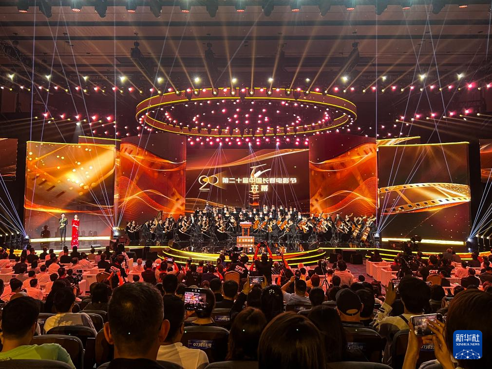 8月23日在吉林長春拍攝的第二十屆中國長春電影節(jié)開幕式暨長影成立80周年交響音樂會現(xiàn)場。