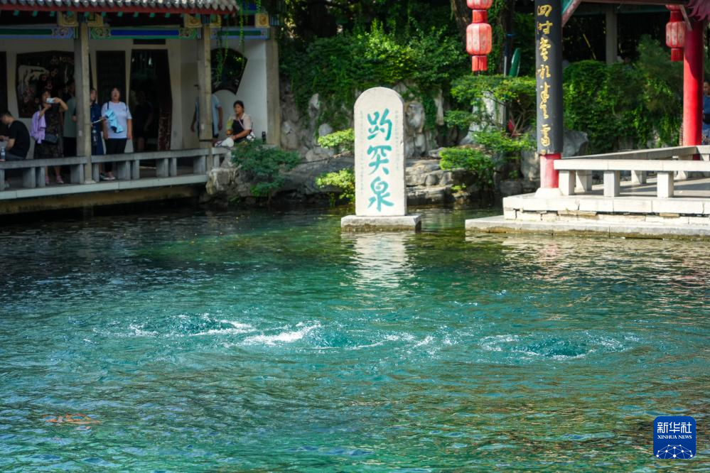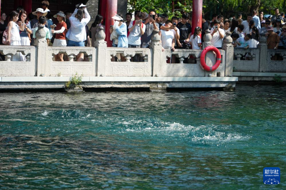 ??近日,受此前降雨影響,山東省濟南市趵突泉地下水位攀升至28.90米以上,泉水噴涌有力,重現(xiàn)“水涌若輪”美景。