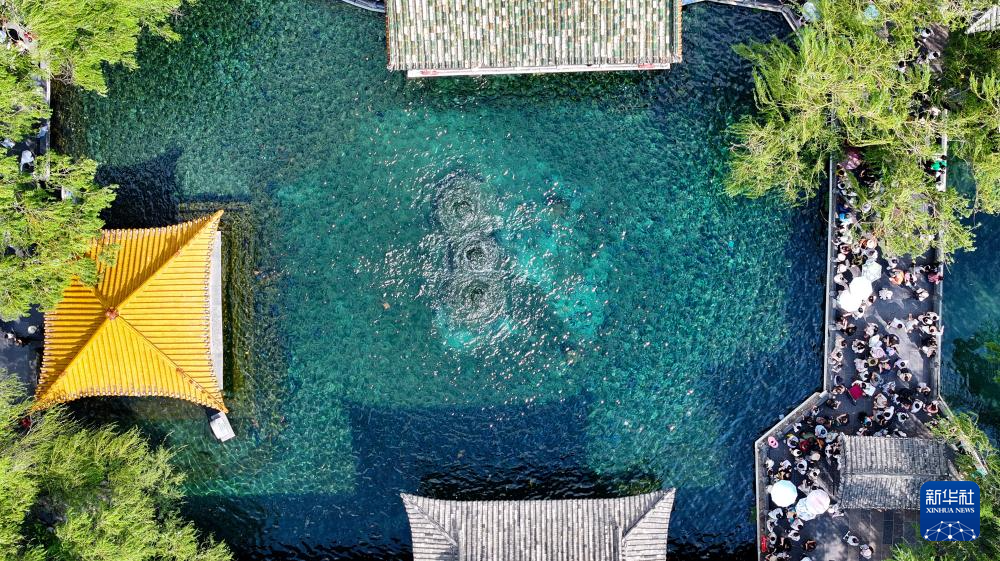 8月22日拍攝的濟南趵突泉(無人機照片)。
