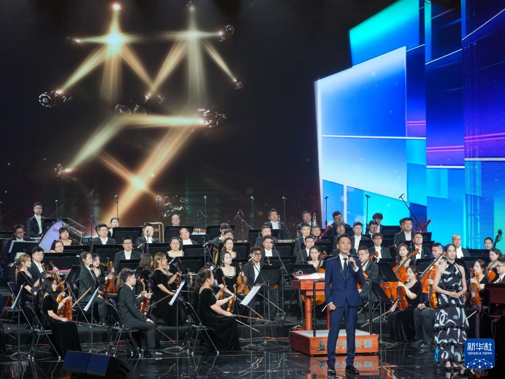 8月23日在吉林長春拍攝的第二十屆中國長春電影節(jié)開幕式暨長影成立80周年交響音樂會現(xiàn)場。
