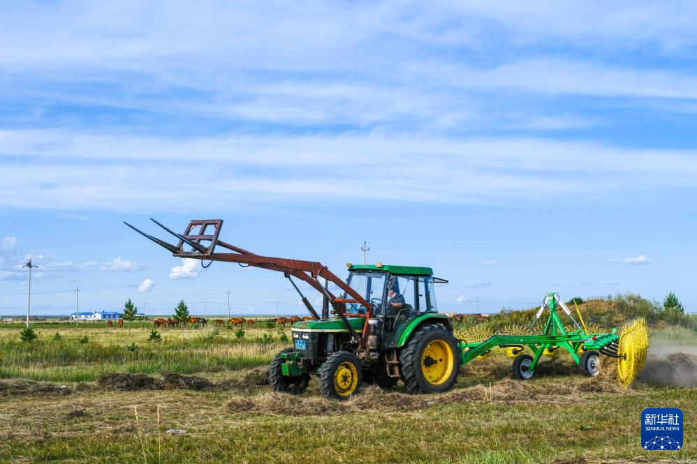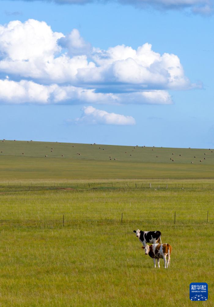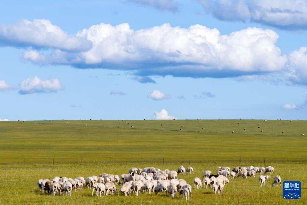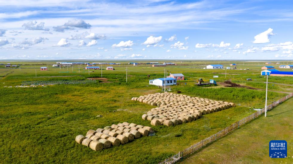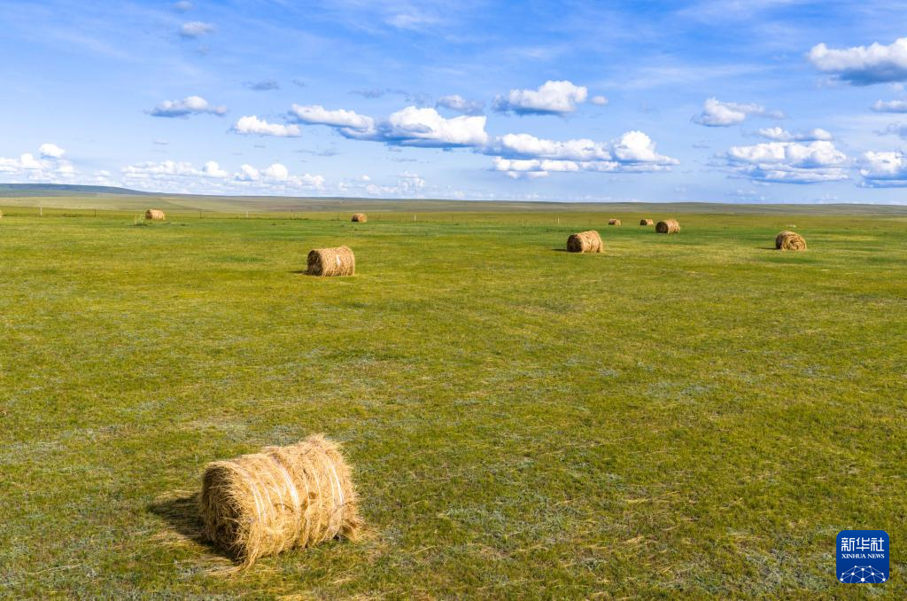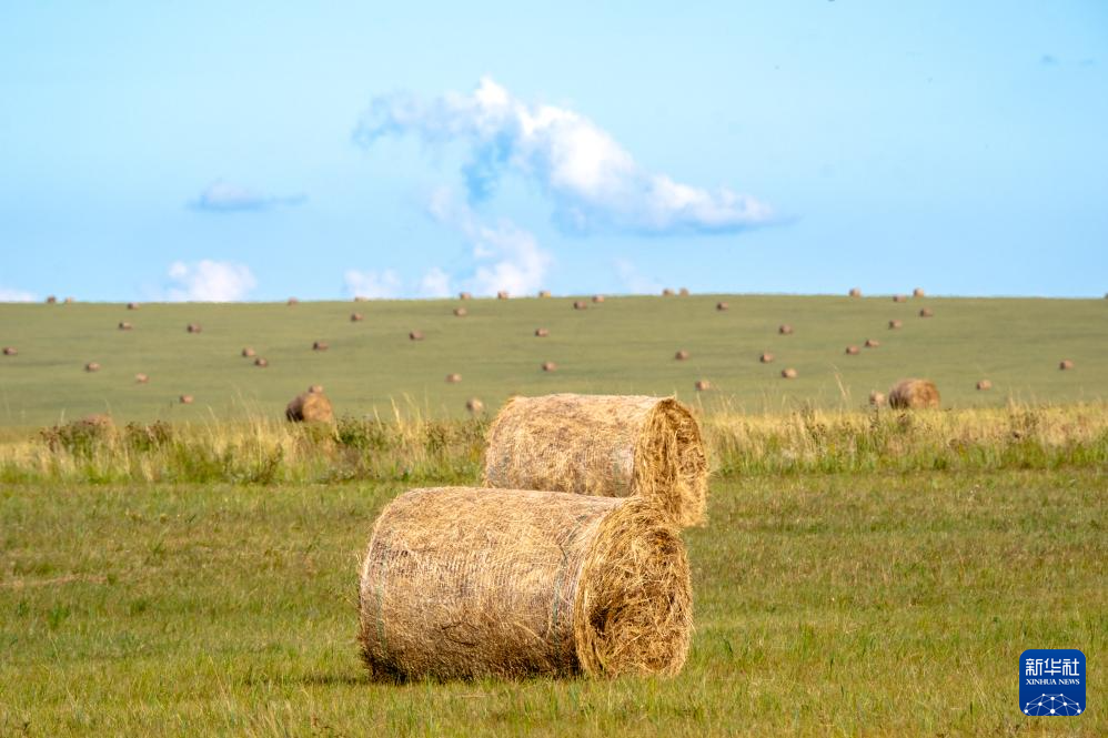 初秋時(shí)節(jié),內(nèi)蒙古呼倫貝爾大草原草色漸黃。在遼闊的草原上,牧民將豐收的牧草捆扎成卷,成群的牛羊、馬匹漫步其間,勾勒出一幅祥和美麗的秋日豐收圖景。