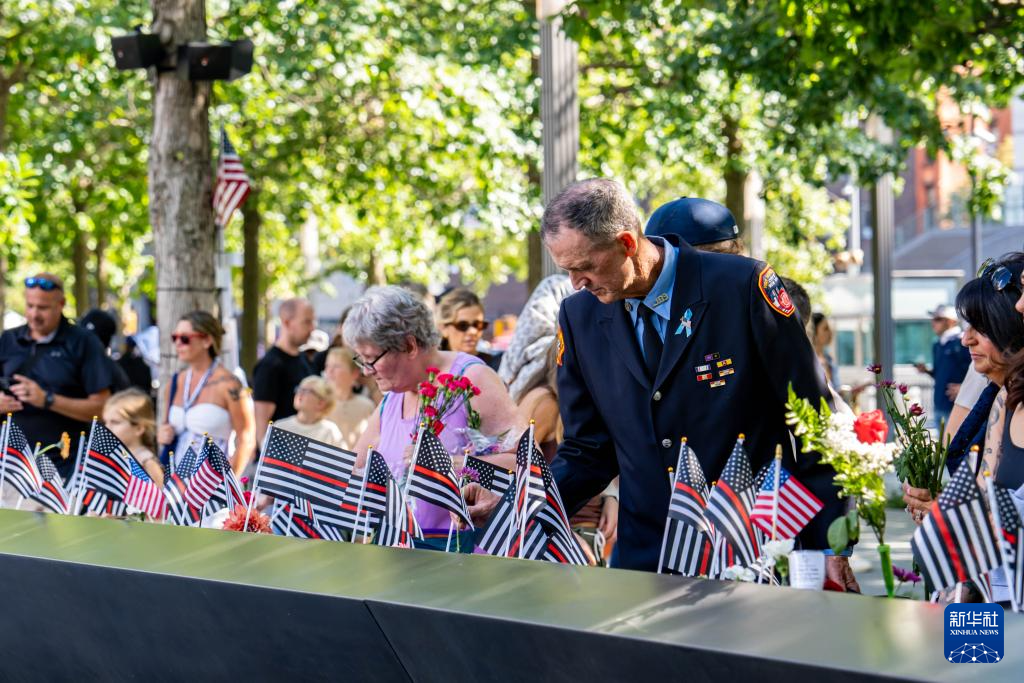 9月11日,民眾在美國紐約“9·11”紀(jì)念廣場悼念“9·11”恐怖襲擊事件的遇難者。