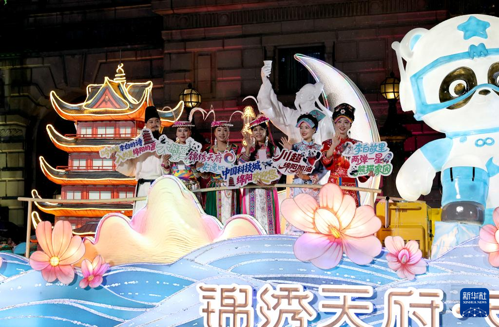 9月13日在上海旅游節(jié)花車(chē)巡游活動(dòng)上拍攝的四川省阿壩藏族羌族自治州主題花車(chē)。
