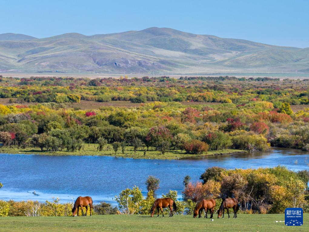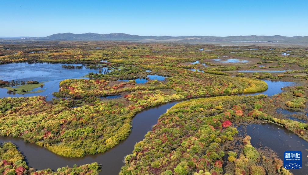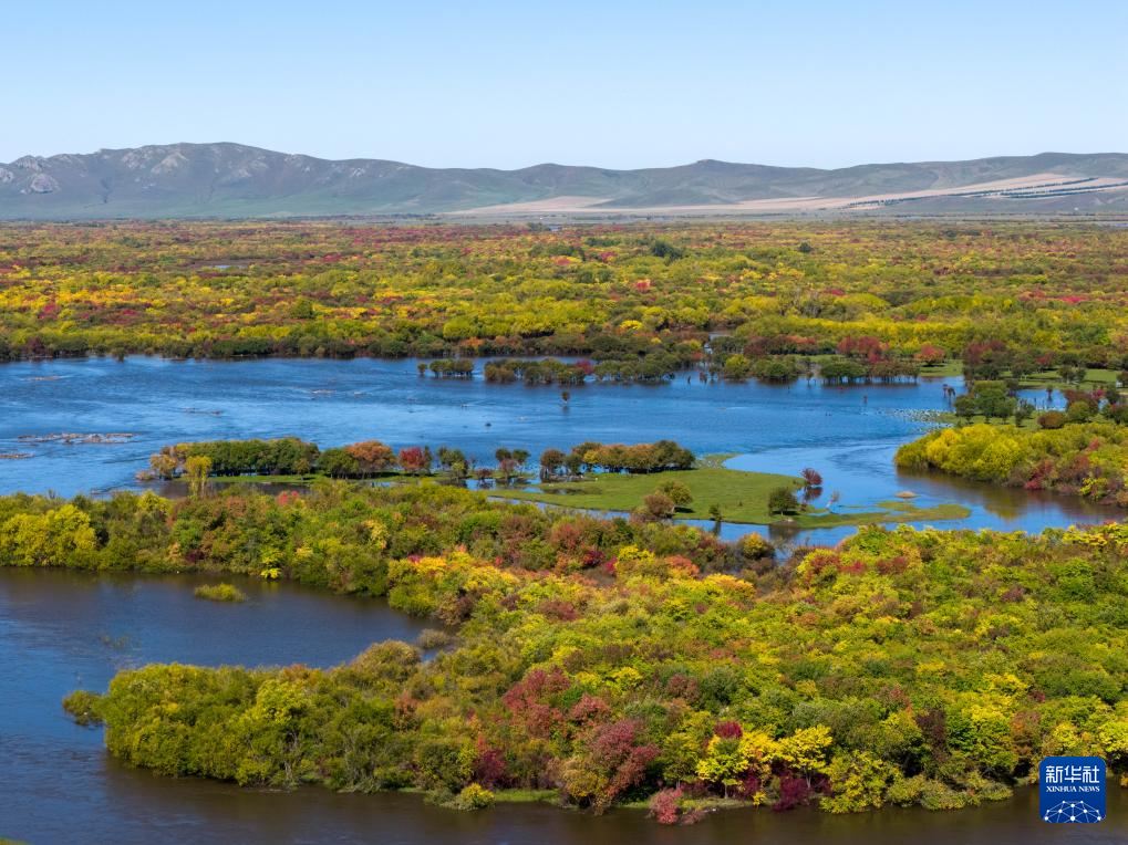 時下,內(nèi)蒙古額爾古納濕地迎來秋日盛景,多彩的灌木叢點綴其間,蜿蜒的河流如藍絲帶般靜靜流淌,宛若大自然打翻的調(diào)色盤。