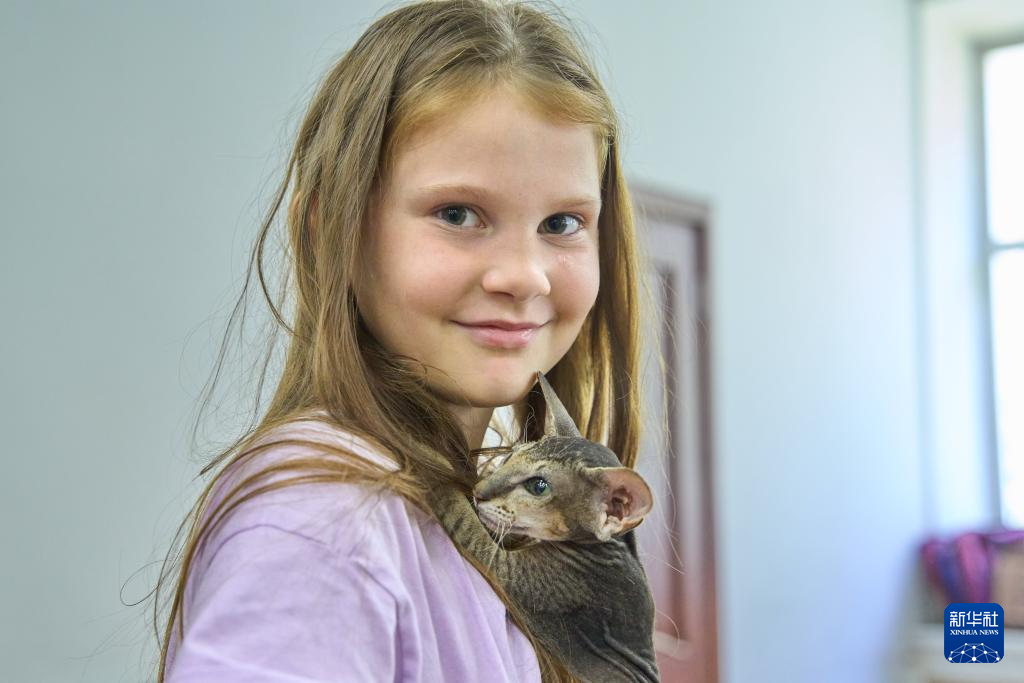 9月21日,一名女孩展示她的斯芬克斯貓。