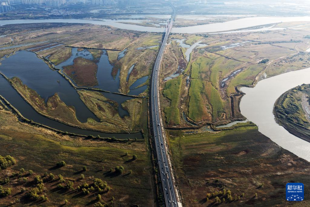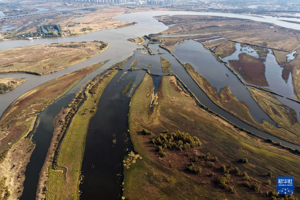 這是10月7日拍攝的哈爾濱金河灣濕地公園景色(無(wú)人機(jī)照片)。
