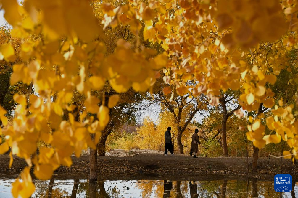 10月14日,游客在甘肅省敦煌市黃渠鎮(zhèn)的胡楊林中游覽。