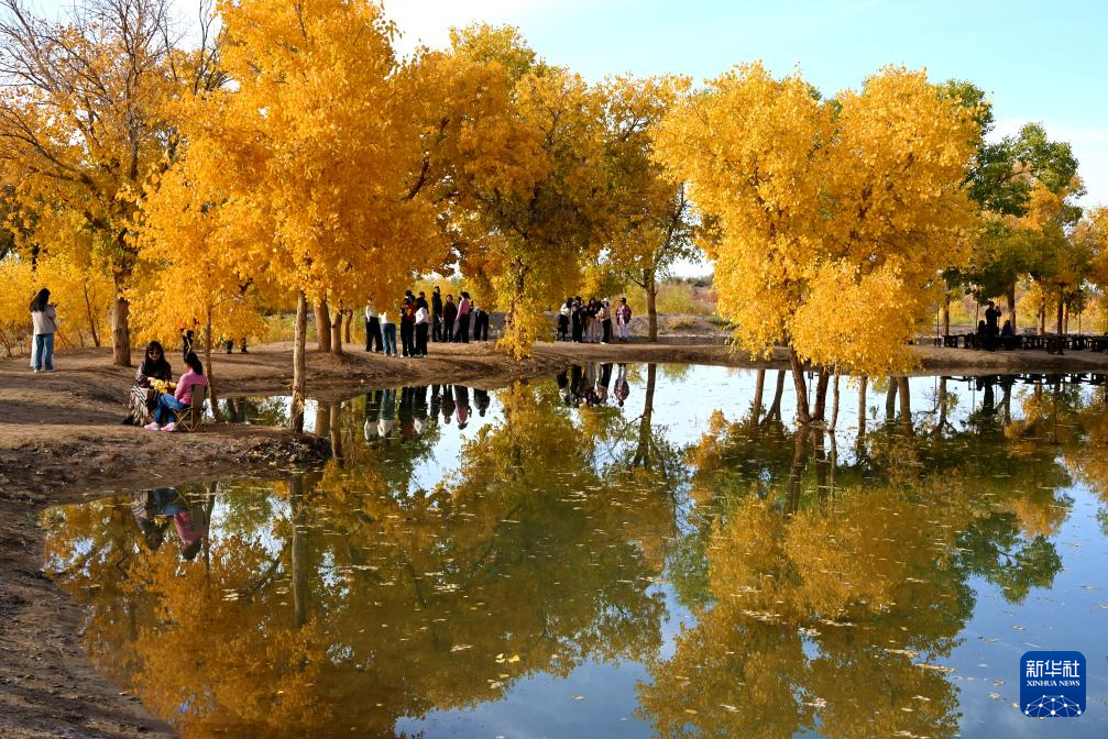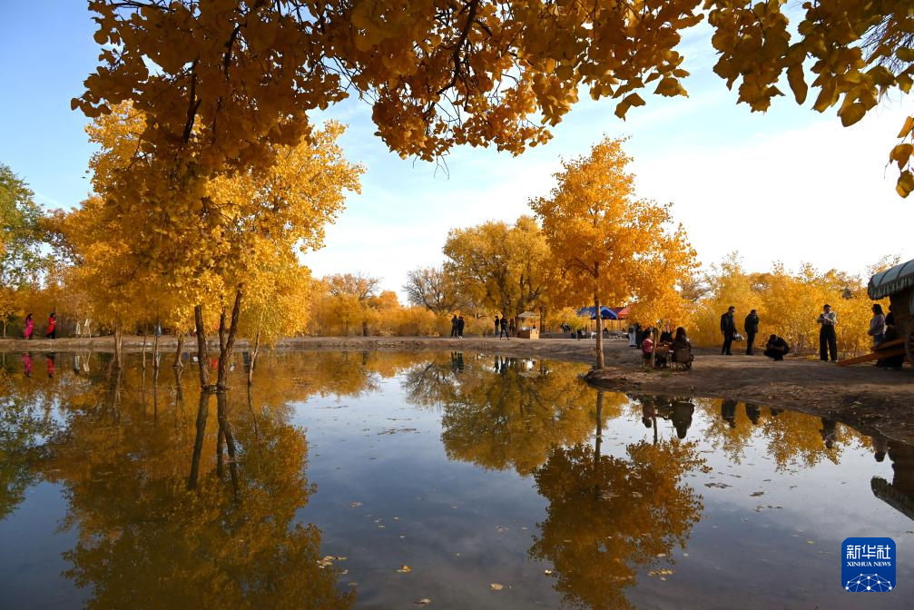 金秋十月,甘肅敦煌多地胡楊林被秋色渲染,吸引游客前來賞景打卡拍照。