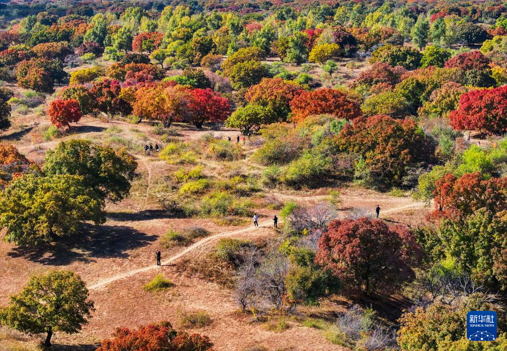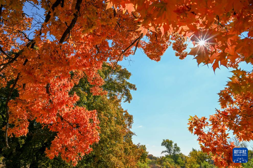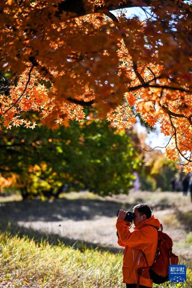 這是10月18日拍攝的烏旦塔拉五角楓森林公園美景(無人機(jī)照片)。