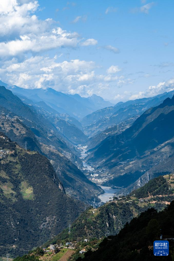 空中俯瞰依山而建的老姆登村(無人機照片,10月20日攝)。