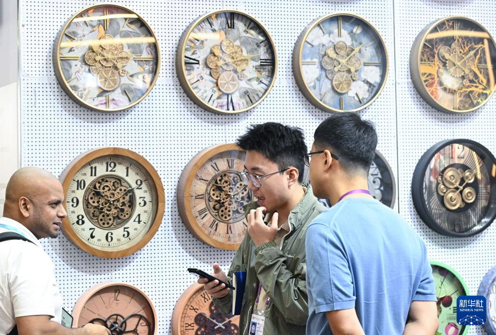 10月23日,境外采購(gòu)商在鐘表展臺(tái)洽談。