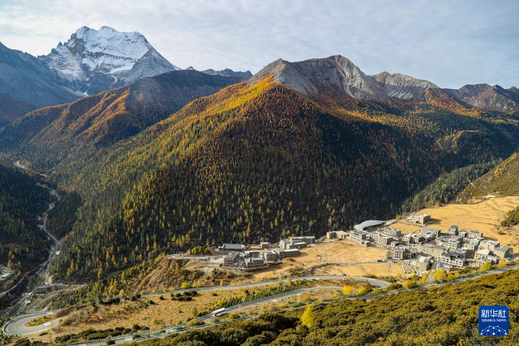 俯瞰仙乃日雪山和彩林(10月30日攝,無人機(jī)照片)。