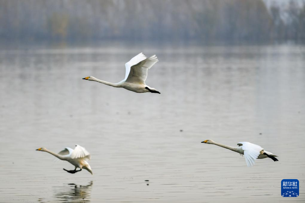 初冬時節(jié),山西平陸黃河濕地迎來了從俄羅斯西伯利亞地區(qū)飛來越冬的白天鵝。占地6000多公頃的山西平陸黃河濕地位于山西、河南兩省交界處,每年到此越冬的白天鵝數(shù)量在1萬只左右。