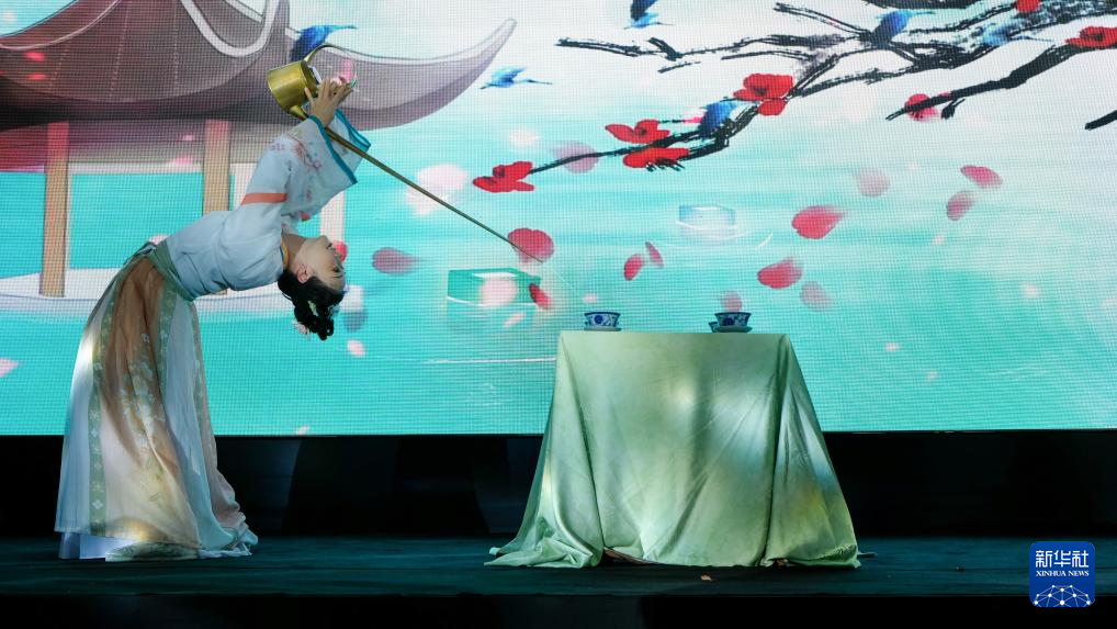 11月15日,在摩洛哥卡薩布蘭卡,演員進行空竹表演。
