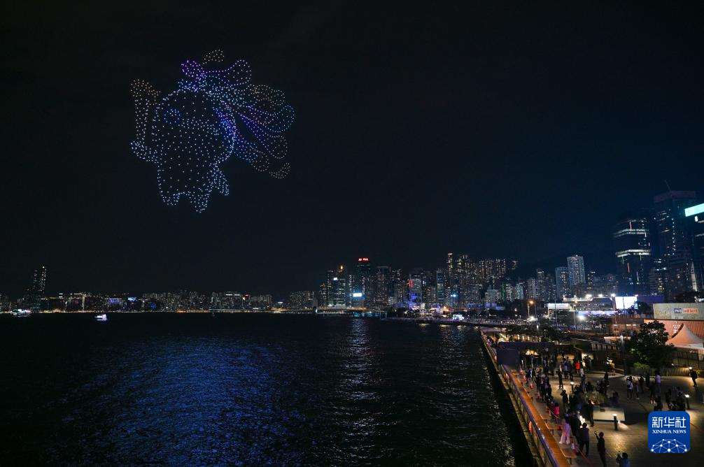 香港舉行“體育力量 閃耀香江”大型無人機表演